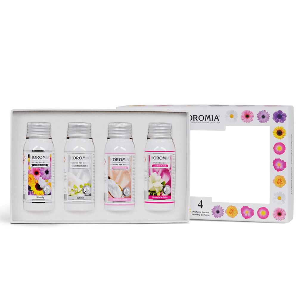 HORO 4 contains the following scents: Liberty, White, Soffice talco, and Muschi e lotto.