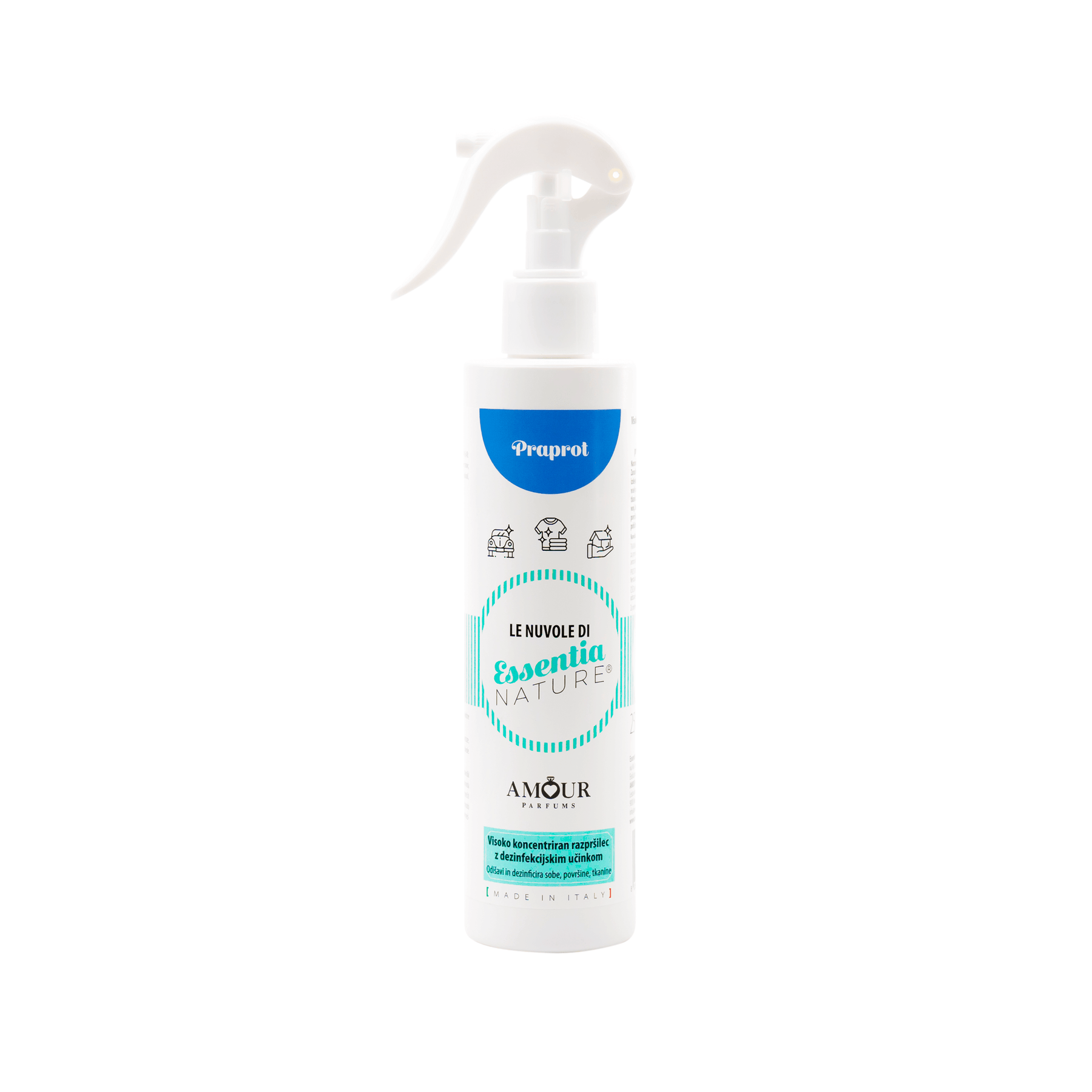 Highly concentrated multifunctional FRAGRANT SPRAY for refreshing textiles, spaces, and cleaning surfaces.
